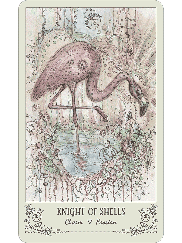 Paulina Cassidy has produced a lacy, delicate work, with the animal allies rendered in pastel colors. But do not underestimate Spiritsong Tarot’s power! Spiritsong’s animal messengers teach profound mysteries gently, always choosing to inspire rather than to intimidate.