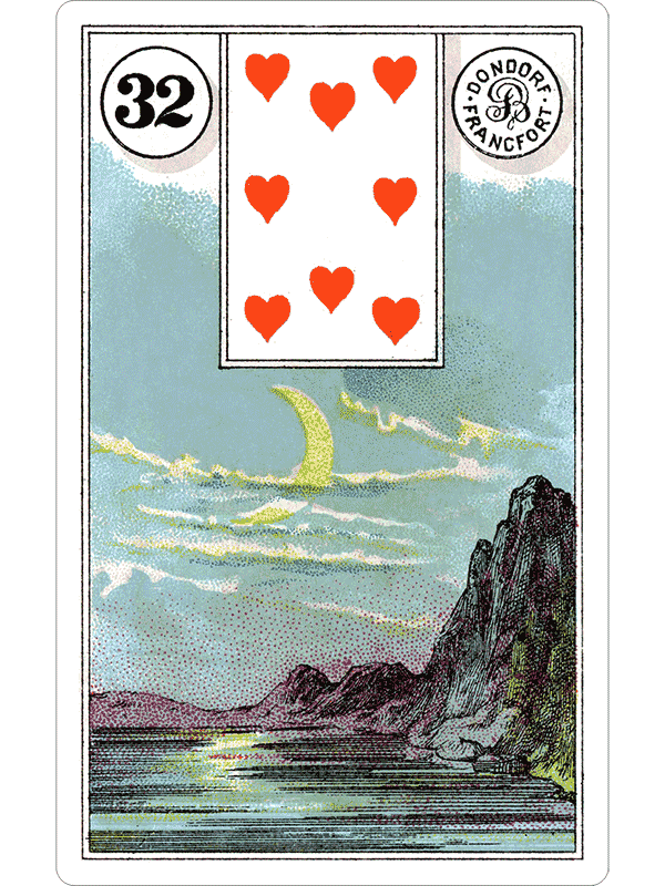 The Dondorf Lenormand is a classic historical deck. Printed in Germany, the deck was sold for sixty years and used in every country in Europe. This definitive deck is now available in pixels, re-tooled for the 21st Century by The Fool’s Dog