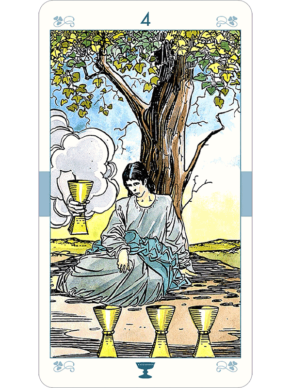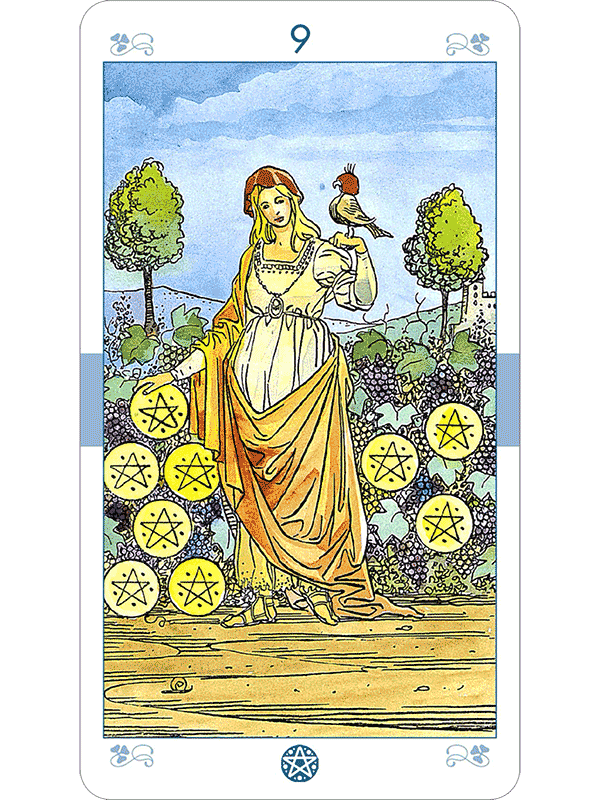 Drawn with Italian flair, the classic scenes are depicted more dynamically, and with sharper focus. The symbolism remains very faithful to the original, but the art is more refined. The deck’s palette of colors is both lighter and brighter than the RWS. Subtle shadings and occasional changes in perspective give the images a more photorealistic appearance. Universal Tarot offers a more polished, sophisticated interpretation of the RWS deck. It is ideal for people who do not like Pamela Colman Smith’s art, but do wish to work with a deck designed to follow RWS very closely.