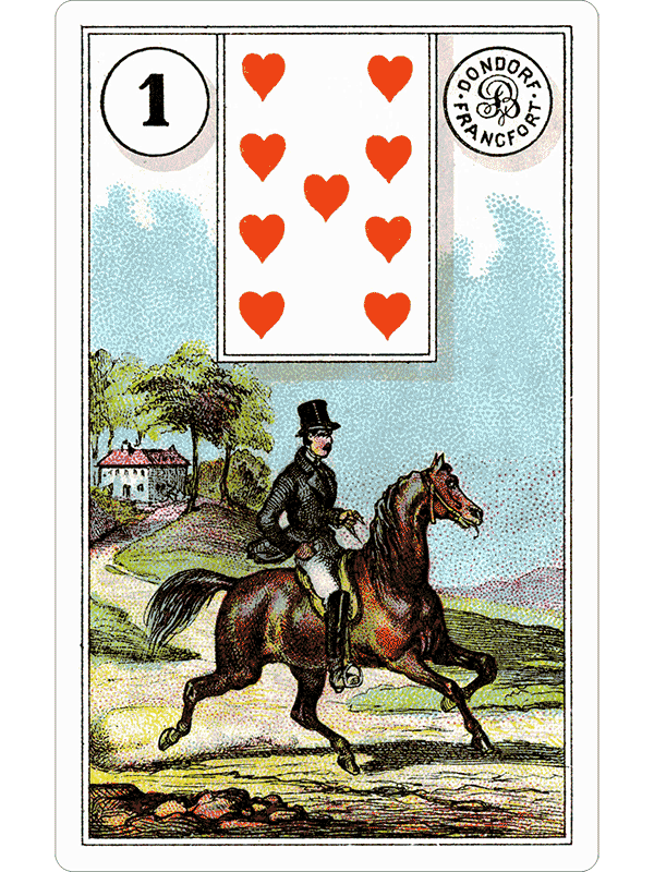 The Dondorf Lenormand is a classic historical deck. Printed in Germany, the deck was sold for sixty years and used in every country in Europe. This definitive deck is now available in pixels, re-tooled for the 21st Century by The Fool’s Dog
