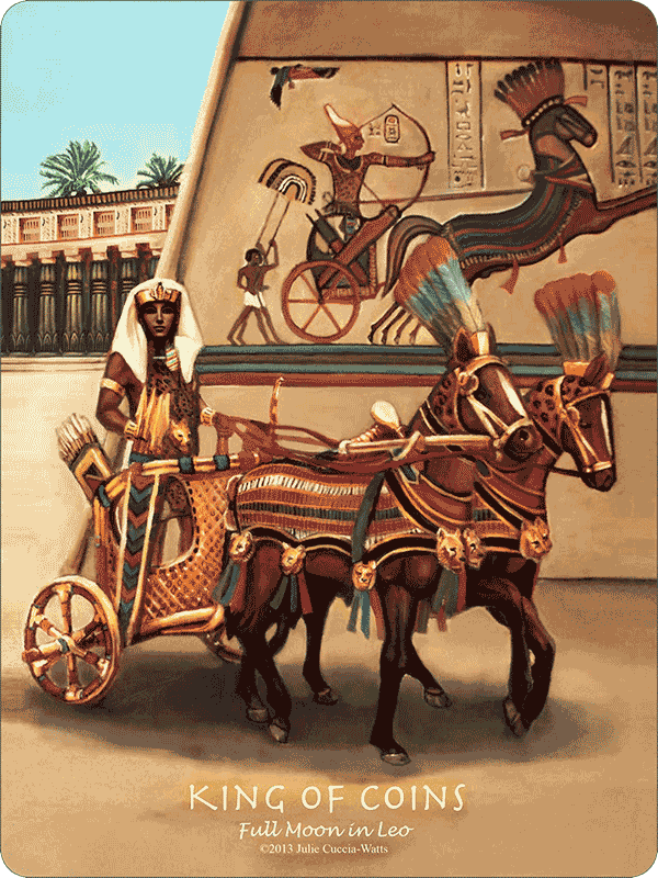 In Journey into Egypt, Julie Cuccia-Watts gives us multi-racial ancient Egyptian society depicted realistically. The deck includes images of early eras, as well as later periods during Greek and Roman rule. These exquisite Tarot cards echo well-known works of fine art and ancient architecture, deepening the deck’s artistic resonance. The sumptuously cinematic cards are accompanied by a detailed guidebook crammed with information both historical and visionary about ancient Egyptian culture. Journey into Egypt Tarot shows us wonders of ancient Egypt when the architecture was new and the paint was fresh. If you’ve ever longed to stroll Amun’s temple at Karnak, or to see the great Pharos of Alexandria lit at night, Journey into Egypt will transport you to the ancient Egypt of your dreams.